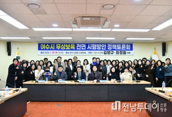 전남투데이 조평훈 기자 | 여수시의회는 29일 오후 2시, 여수시의회 소회의실에서 정부의 단계적 무상보육 확대 정책에 발맞춰 전연령 무상보육 실현을 위한 정책 논의를 위한 '여수시 무상보육 전면 시행방안 정책토론회'를 개최했다.