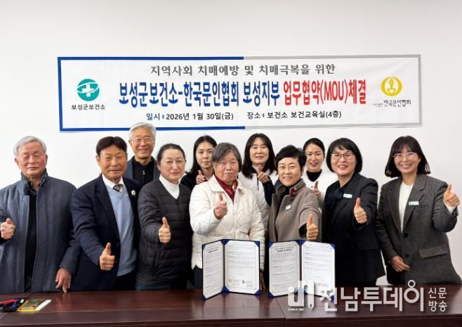 전남투데이 조평훈 기자 | 보성군은 지난 1월 30일 보성군보건소와 한국문인협회 보성지부가 치매 어르신의 기억과 삶을 기록으로 남기기 위한 업무 협약(MOU)을 체결했다고 밝혔다.