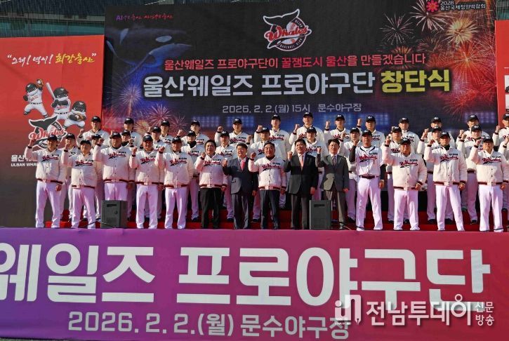 전남투데이 박세훈 기자 | 울산광역시(시장 김두겸)는 2월 2일(월) 울산 문수야구장에서 '울산 웨일즈' 공식 창단식을 개최했다.