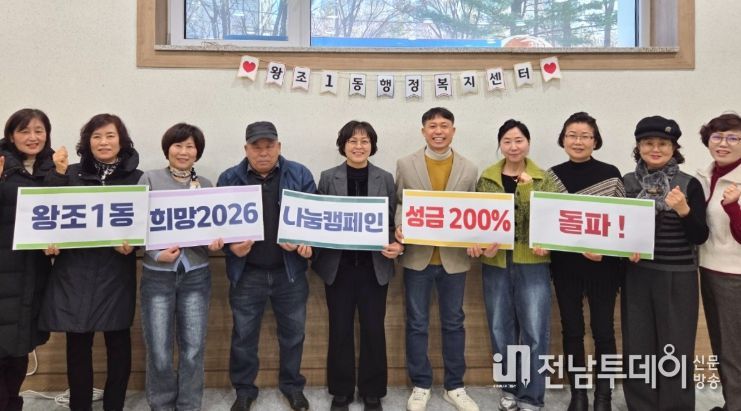 전남투데이 조평훈 기자 | 순천시 왕조1동은 지난해 12월부터 추진한 ‘희망2026 나눔캠페인’ 성금 모금 기간동안 목표액 대비 200%를 달성하며 지역사회 나눔의 모범사례로 주목받고 있다.