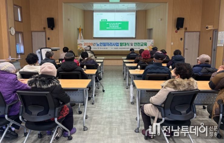 전남투데이 조평훈 기자 | 옥룡면사무소는 2월 3일 옥룡면 교육문화복지센터 다목적 강당에서 ‘2026년 노인일자리사업 발대식 및 안전교육’을 실시했다.