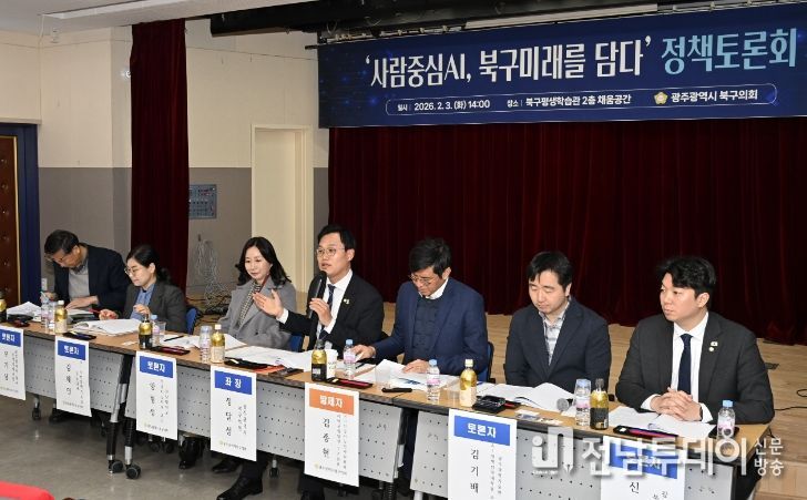 전남투데이 김경민 기자 | 광주광역시 북구의회가 지난 3일 북구평생학습관에서 정달성 의원(용봉·매곡·삼각·일곡동/더불어민주당) 주관으로 ‘사람중심 AI, 북구 미래를 담다’ 정책토론회를 개최했다.