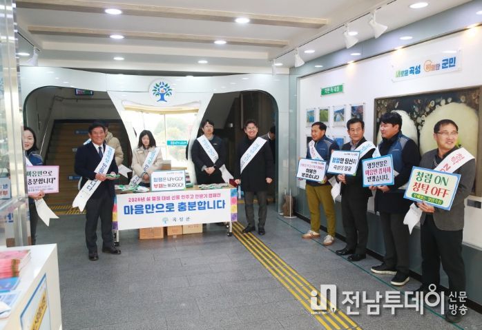 전남투데이 정홍균 기자 | 전남 곡성군은 설 명절을 앞둔 지난 4일, 청사 출입구 앞에서 ‘선물 안 주고 안 받기’ 메시지를 내걸고 청렴 캠페인을 전개했다고 밝혔다.