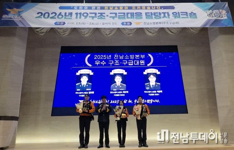 전남투데이 조평훈 기자 | 여수소방서는 지난 2월 5일 쏠비치 진도에서 전라남도 소방본부 주관으로 열린 2026년 구조·구급대응 업무 담당자 워크숍에 참석해, 별도로 진행된 『2025년 우수 구조‧구급대원 시상식』에서 수상의 영예를 안았다.