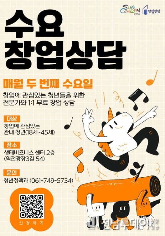 전남투데이 조평훈 기자 | 순천시가 창업에 어려움을 겪는 청년 창업자와 예비 창업자를 대상으로 '2026년 수요창업상담'을 연중 운영한다.