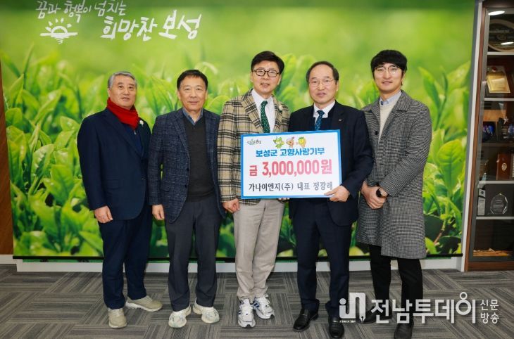 전남투데이 조평훈 기자 | 보성군은 6일 가나이엔지 정광래 대표가 고향 발전을 응원하는 뜻으로 고향사랑기부금 300만 원을 기부했다고 밝혔다.