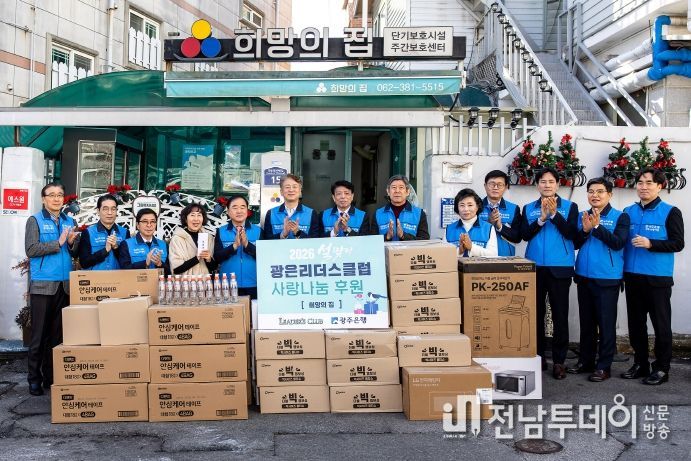 전남투데이 김경민 기자 | 광주은행은 설 명절을 앞둔 6일, 지역 우수 중소기업 CEO 모임인 ‘광은리더스클럽(골드클래스(주) 회장 박철홍)’ 회원들과 함께 설맞이 사랑 나눔 행사를 진행했다고 밝혔다.