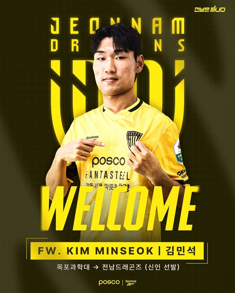 전남에 입단한 김민석은 “전남드래곤즈에 합류하게 되어 영광이다. 어렵게 온 자리인 만큼 최선을 다해 좋은 모습을 보여드리고 싶다. 팬분들께서 열정적으로 응원해주시는 만큼, 그 응원에 보답할 수 있도록 운동장에서 끝까지 최선을 다하겠다”고 소감을 밝혔다.