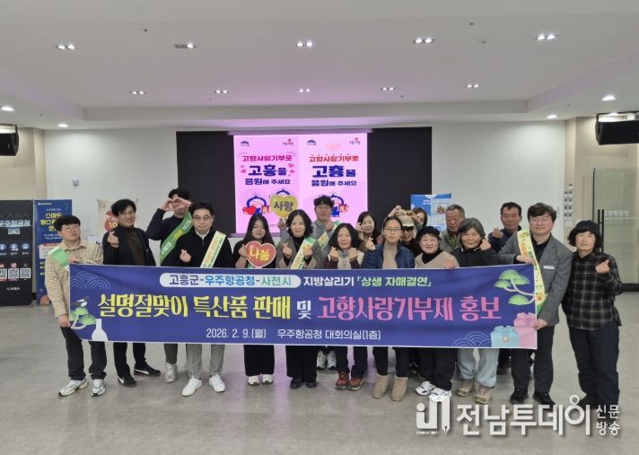 전남투데이 조평훈 기자 | 고흥군은 9일 우주항공청 대회의실(경남 사천시)에서 고흥군·우주항공청·사천시가 함께하는 설 명절맞이 특산품 판매 및 고향사랑기부제 홍보 행사를 개최했다고 밝혔다.