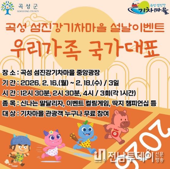 전남투데이 정홍균 기자 | 곡성군은 설명절 연휴 기간 중 2월 16일부터 18일까지 3일간 섬진강기차마을 중앙광장에서 방문객들을 위한 특별 이벤트를 운영한다고 6일 밝혔다.