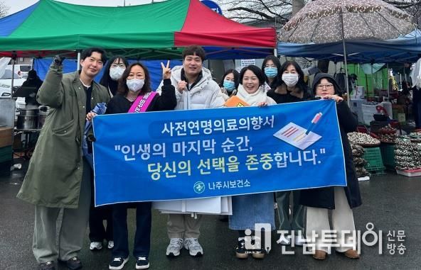 전남투데이 김윤걸 기자 | 전라남도 나주시가 시민들의 자기결정권 존중과 존엄한 삶의 마무리에 대한 인식을 높이기 위해 사전연명의료의향서 제도 홍보 캠페인을 진행했다.
