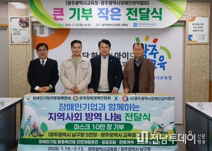 광주시장애인권익협회 김선욱 회장은 “이번 기부가 학생들의 건강을 지키는 데 작은 힘이 되길 바란다”며 “지역사회와 함께하는 나눔 활동을 꾸준히 펼치겠다”고 전했다.