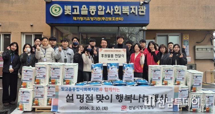 이날 전남지방우정청 행복나눔봉사단은 급식소를 찾은 어르신들에게 떡국과 명절 음식을 정성껏 배식하고, 식당 정돈 등 봉사활동을 진행했다. 또한 250만 원 상당의 명절 특식 지원과 후원 물품을 전달하며 온정을 나눴다.