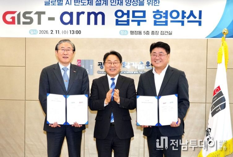 광주광역시는 세계 1위 반도체 설계(IP)기업인 영국의 암(Arm)과 광주과학기술원(GIST)이 11일 ‘반도체 설계 전문인력 양성을 위한 업무협약(MOU)’을 체결했다고 밝혔다.