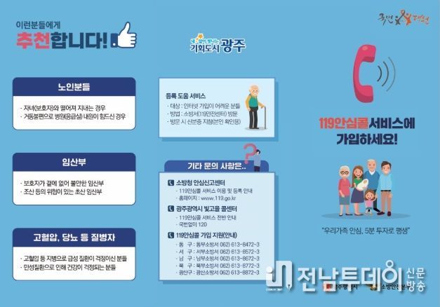 전남투데이 김경민 기자 | 광주광역시 소방안전본부는 설 명절 연휴를 앞두고 응급상황 발생 때 신속한 대응과 골든타임 확보를 위해 ‘119안심콜’ 서비스 가입을 적극 독려했다.