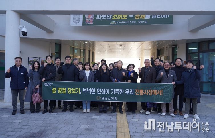 전남투데이 허은석 기자 | 담양군의회는 설 명절을 앞둔 12일, 담양상설시장을 찾아 지역경제 활성화를 위한 ‘설 명절 전통시장 장보기 행사’를 펼쳤다.