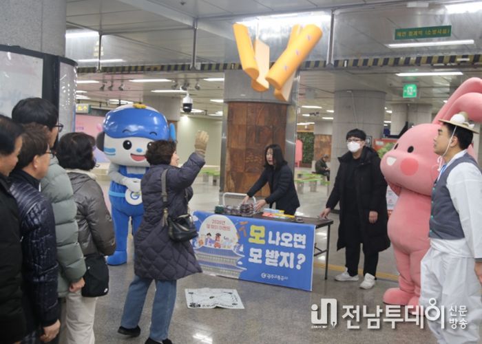 전남투데이 김경민 기자 | 광주교통공사는 설 명절을 맞아 시민들에게 즐거운 명절 분위기를 전하기 위해 설맞이 전통 윷놀이 이벤트를 개최했다고 밝혔다.