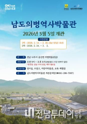 박중환 전남도 남도의병역사박물관 개관준비단장은 “사전관람은 남도의병역사박물관이 도민 품으로 가기 위한 마지막 준비 과정”이라며 “설 당일을 제외한 연휴 기간 가족과 함께 방문해 박물관이 나아갈 방향에 대한 소중한 의견을 보태주길 바란다”고 말했다.