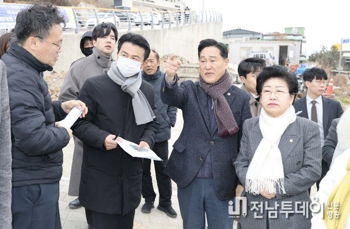 전남투데이 김용희 기자 | 전라남도의회 강문성 기획행정위원장(더불어민주당, 여수3)은 지난 2월 11일 광림동 브리온오션프랑 아파트 일원에서 서초등학교 통학 안전 확보와 관련한 주민 민원을 청취하고 관계기관과 함께 현장점검을 실시했다.