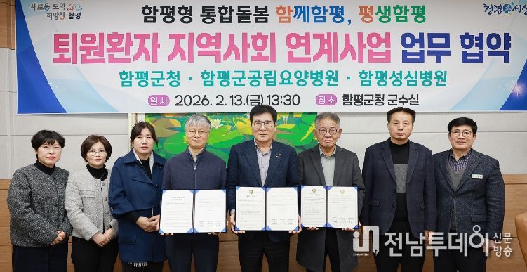 함평군은 13일 “퇴원환자의 원활한 지역사회 복귀를 지원하기 위해 함평군공립요양병원·함평성심병원과 ‘퇴원환자 지역사회 연계사업’ 업무협약을 체결했다”고 밝혔다.