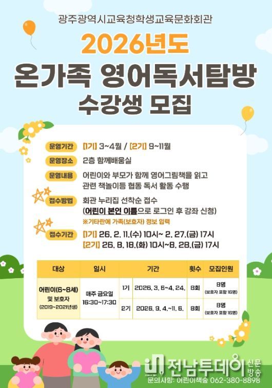 전남투데이 김경민 기자 | 광주시교육청학생교육문화회관이 오는 3월부터 영어 독서 프로그램 ‘아이 can do it’, ‘온가족 영어독서탐방’을 운영한다.