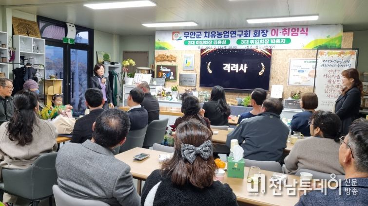 전남투데이 박세훈 기자 | 무안군은 지난 13일 청계면 소재 ‘한국그린케어 치유농장’에서 치유농업연구회 회원 등 20여 명이 참석한 가운데 무안군 치유농업연구회 회장 이·취임식을 개최했다고 밝혔다.