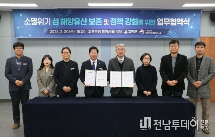 전남투데이 조평훈 기자 | 고흥군은 20일 군청 팔영산홀에서 국가유산청 국립해양유산연구소와 ‘고흥군 섬 해양유산조사 업무협약’을 체결했다고 밝혔다.