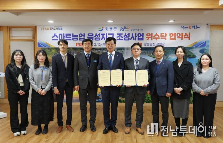 전남투데이 김용희 기자 | 장흥군은 스마트농업 육성지구의 체계적이고 효율적인 조성을 위해 한국농어촌공사 장흥지사와 위수탁 협약을 체결했다고 밝혔다.