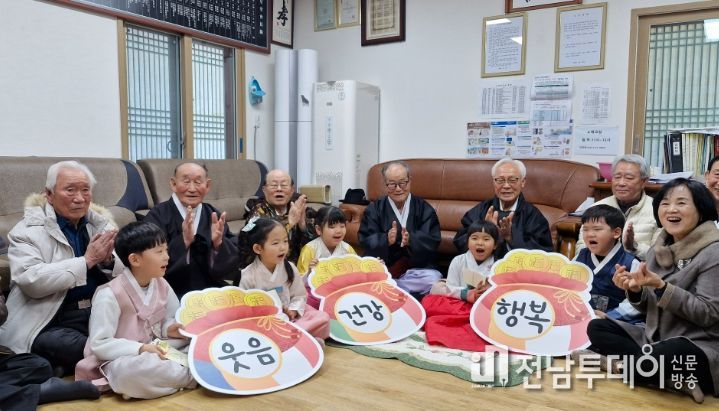 특히 푸른들어린이집 원아들이 지역 어르신들께 세배 인사를 하며, 세대 간의 따뜻한 정을 나눴다.