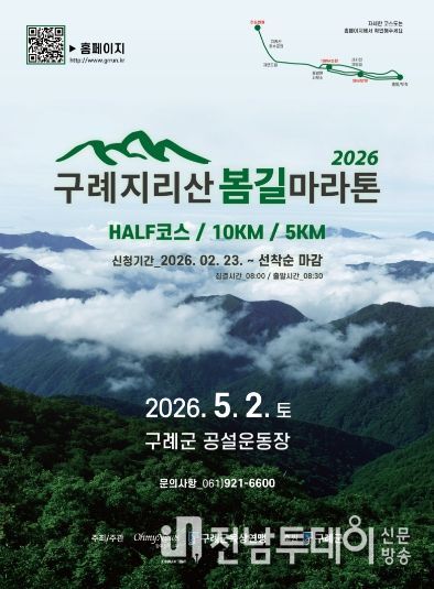 전남투데이 강길수 기자 | 전남 구례군은 아름다운 자연환경을 배경으로 한 ‘제1회 구례 지리산봄길 마라톤대회’가 오는 5월 2일 구례공설운동장에서 개최된다고 밝혔다.