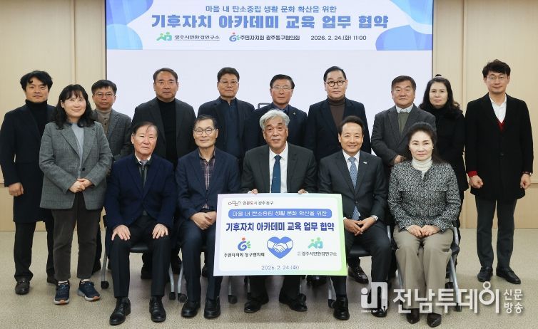 전남투데이 김경민 기자 | 광주 동구는 지난 24일 주민자치회 동구협의회, (사)광주시민환경연구소와 기후위기 대응 역량 강화를 위한 업무협약을 체결하고, 관내 13개 동을 대상으로 ‘기후자치 아카데미’를 운영했다고 밝혔다.