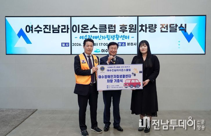 전남투데이 조평훈 기자 | 여수시가 지난 24일 시청 현관에서 여수진남라이온스클럽이 창립 52주년을 맞아 지역사회 나눔 실천의 일환으로 여수장애인자립생활센터에 차량을 후원했다고 밝혔다.