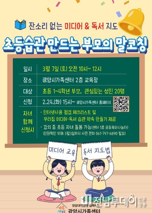첫 교육은 학령기 부모를 대상으로 한 ‘잔소리 없는 미디어·독서지도-초등습관을 만드는 부모의 말 코칭’으로 진행된다.