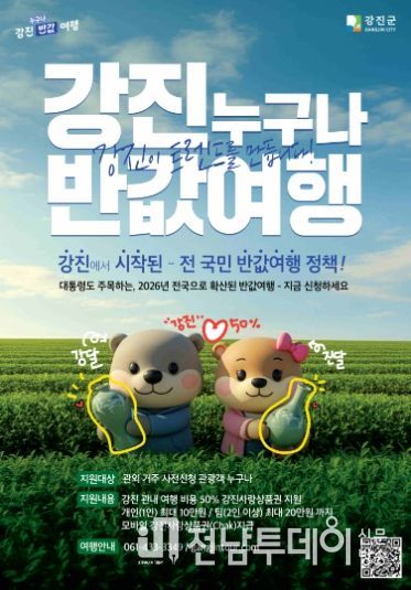 특히 이번 사업은 강진군이 선도적으로 추진해 전국적 주목을 받았던 ‘반값여행’ 정책을 정부가 제도화한 것으로, 전남이 지역관광 활성화 정책의 선도 모델을 제시했다는 점에서 의미가 크다.