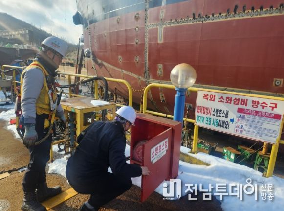 전남투데이 김용희 기자 | 해남소방서는 지난 26일 겨울철 대형화재를 선제적으로 예방하기 위해 관내 핵심 수출 사업장인 대한조선을 대상으로 화재안전조사를 실시했다고 밝혔다.