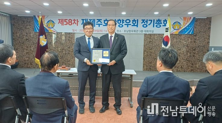 장정환 재제주호남향우회장은 “현재 전남·광주 행정통합이라는 역사적인 출범을 앞두고 있다. 이는 고향이 크게 발전할 수 있는 절호의 기회”라며 “재제주호남향우회도 고향 발전을 위해 도움이 될 수 있다면 적극 힘을 보태겠다”고 말했다.