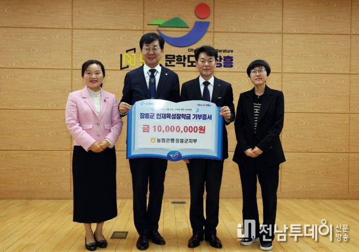 전남투데이 김용희 기자 | NH농협은행 장흥군지부가 지역 인재 육성을 위한 장학금 1천만 원을 기부하며 지역사회에 훈훈한 감동을 전했다.