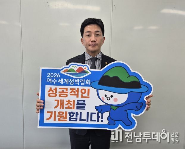 전남투데이 김용희 기자 | 전라남도의회 김진남 의원(더불어민주당,순천5)은 지난 3월 5일 2026년 여수에서 개최되는 세계섬박람회의 성공을 기원하며, 릴레이 응원챌린지에 동참했다.
