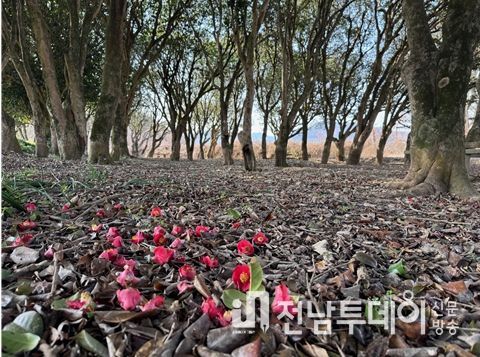 전남투데이 김용희 기자 | 장흥군 묵촌마을에 조성된 동백림에 동백꽃이 만개했다.