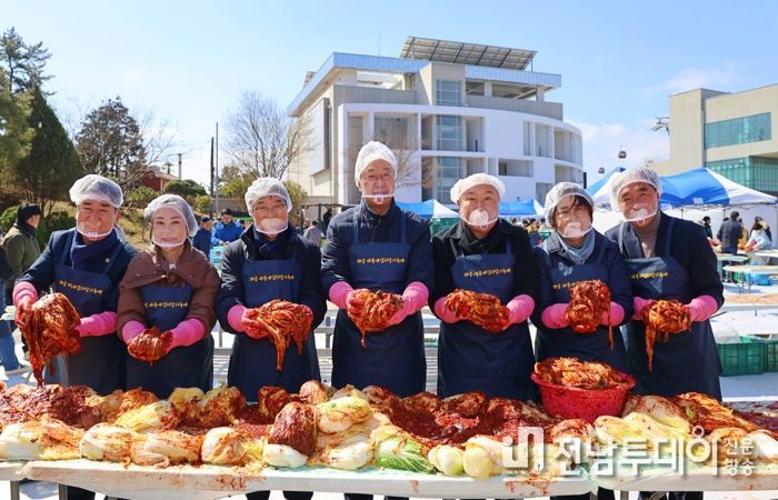 해남군은 7일 문내면 우수영 관광지에서 해남겨울배추로 새 김장을 담그는‘새봄 새김치 담그기 축제’를 열었다.