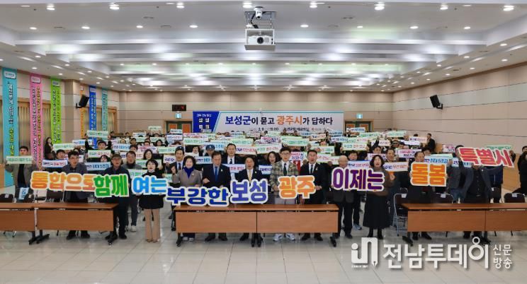 전남투데이 조평훈 기자 | 보성군은 지난 9일 보성군청 대회의실에서 7월 전남·광주 행정통합 출범을 앞두고 양 지역의 연계 발전 방향을 모색하는 ‘광주·전남 통합 보성군 상생토크’를 성황리에 개최했다고 밝혔다.