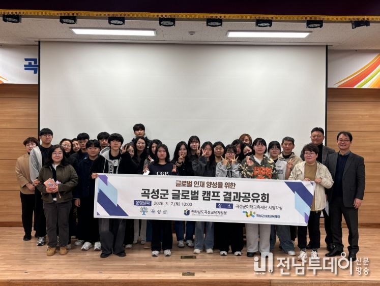 전남투데이 정홍균 기자 | 곡성군미래교육재단은 지난 7일 재단 시청각실에서 글로벌 캠프 참가 학생과 학부모, 재단 관계자 등이 참석한 가운데 ‘곡성군 글로벌캠프 결과공유회’를 개최했다고 10일 밝혔다.