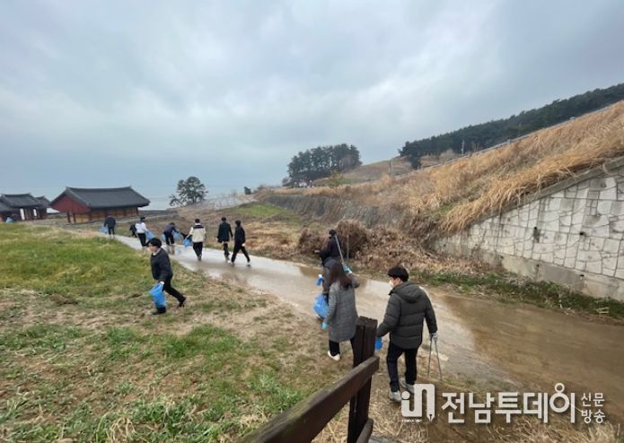 이번 환경정비는 관광객 방문이 4월부터 크게 늘어날 것으로 예상됨에 따라, 직원들은 도로변과 노을전망대, 둘레길 주변 일대에 무단투기된 쓰레기를 수거하고 시설물 점검도 함께 추진했다.