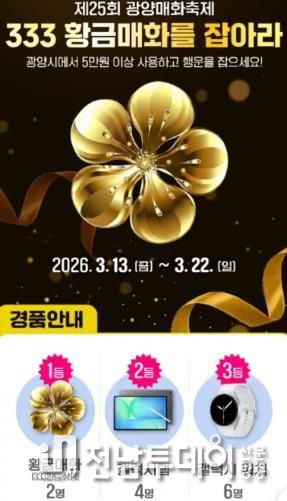 추첨을 통해 333만 원 상당의 황금매화(2명)를 비롯해 갤럭시탭, 갤럭시워치 등 다양한 경품이 제공된다.