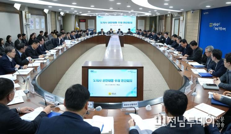 전남투데이 김용희 기자 | 전라남도는 10일 현안회의를 열어 전남광주통합특별시 출범 준비와 유엔기후변화협약(UNFCCC) 기후주간 및 대한민국 녹색전환(K-GX) 국제주간, 여수세계섬박람회 준비 상황을 점검하고 대응 방안을 논의했다.