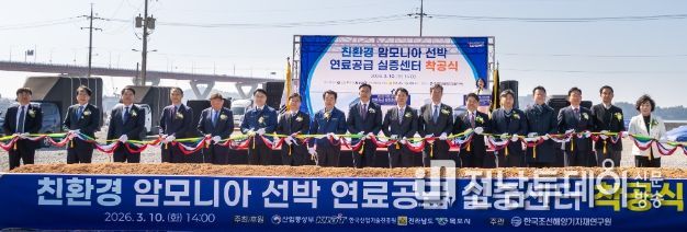 전남투데이 김용희 기자 | 전라남도는 글로벌 선박 시장의 탈탄소화에 대응하고 친환경 선박 기술의 핵심 거점을 구축하기 위해 10일 목포 대양일반산업단지에서 ‘친환경 암모니아 선박 연료공급 실증센터’ 착공식을 열었다.