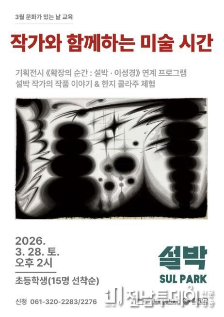함평군은 “함평군립미술관에서 전시 중인 기획전시 《확장의 순간: 설박·이성경》 출품 작가와 함께하는 미술 교육 프로그램인 ‘작가와 함께하는 미술 시간’을 운영한다”고 11일 밝혔다.