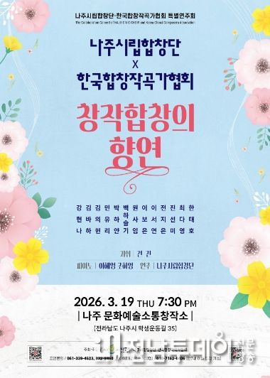 나주시는 오는 3월 19일 오후 7시 30분 문화예술소통창작소에서 나주시립합창단 특별연주회 ‘창작합창의 향연’을 개최한다고 12일 밝혔다.