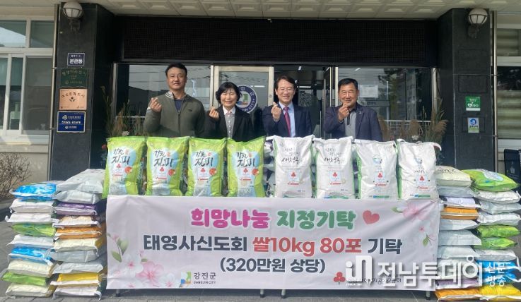 전남투데이 박동운 기자 | 강진군 태영사(주지 도우스님) 신도회가 어려운 이웃을 위해 400만원 상당의 백미 10kg 80포를 지난 12일 강진군청에 기탁했다.