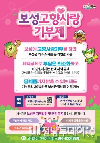 또한 고향사랑기부금으로 조성된 기금은 지역 문제 해결과 주민 복리 증진을 위한 사업에 활용되며, 보성녹차, 벌교꼬막 등 지역 특산품 중심의 답례품 제공을 통해 지역 소상공인의 매출 증대와 지역경제 활성화에도 도움이 될 것으로 기대된다.